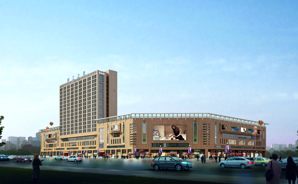 該項目集購物、休閑、餐飲、娛樂、商務酒店為一體,總建築面積113679平方米,其中商業建築面積占70%,賓館占13%,地下車庫占17%。地上部分西部6層,中部4層,東南部為酒店共18層。